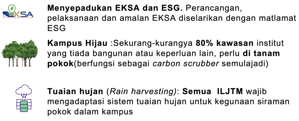 - Memastikan semua kampus ILJTM merupakan kampus hijau yang diiktiraf.