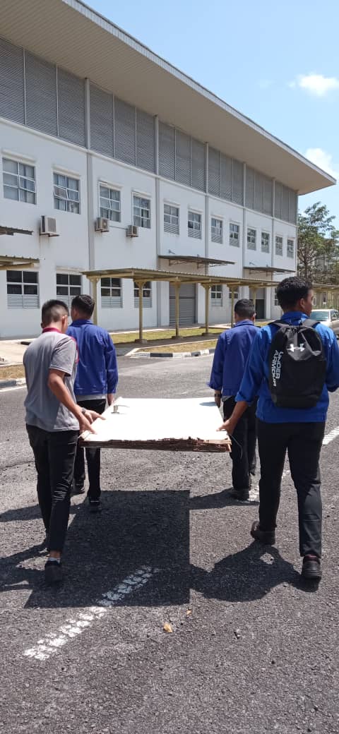 Membaikpulih pintu Rumah Pam Bomba 1 yang rosak akibat dari terdedah kepada cuaca panas dan hujan.